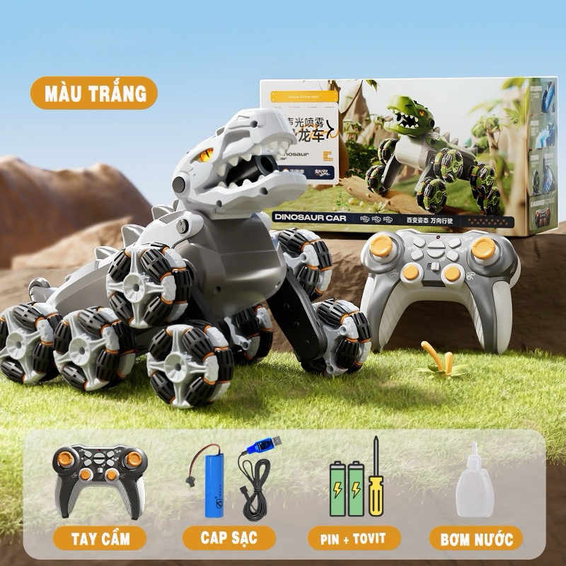 Xe khủng long phun khói điều khiển từ xa 8 bánh pin sạc